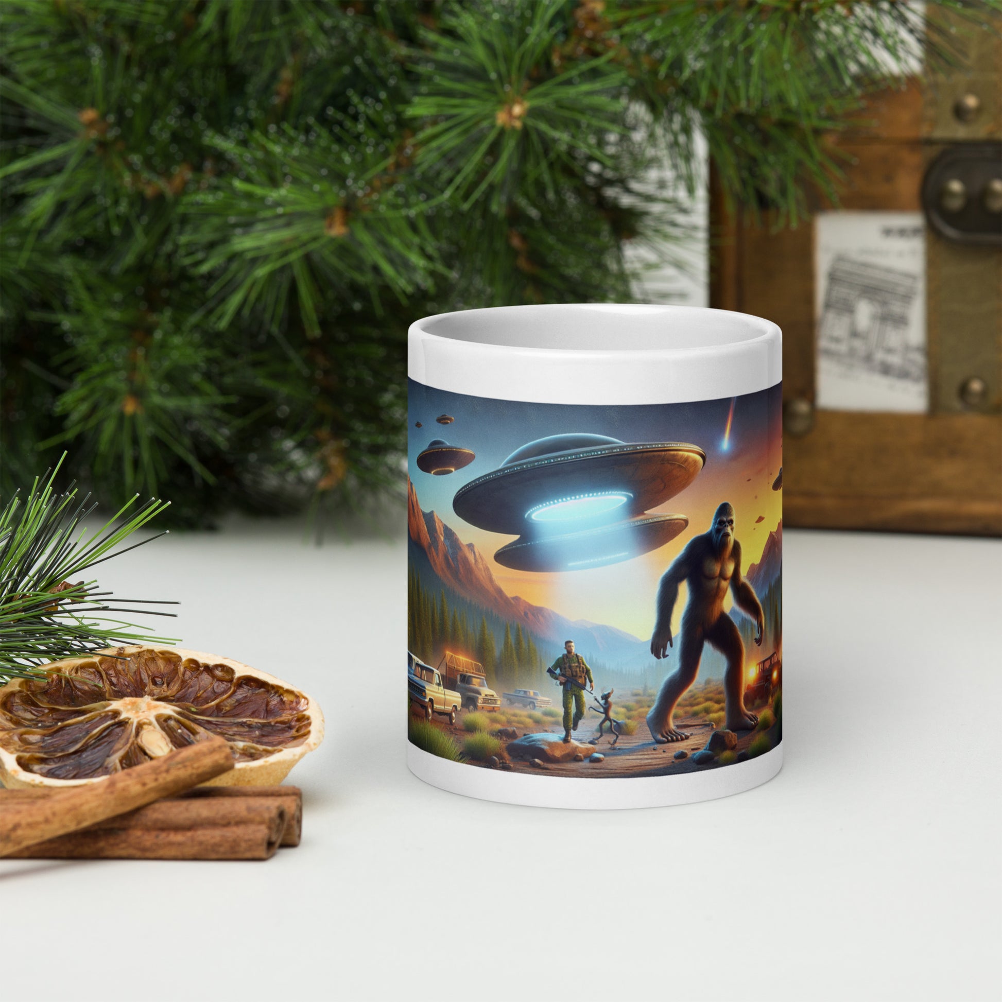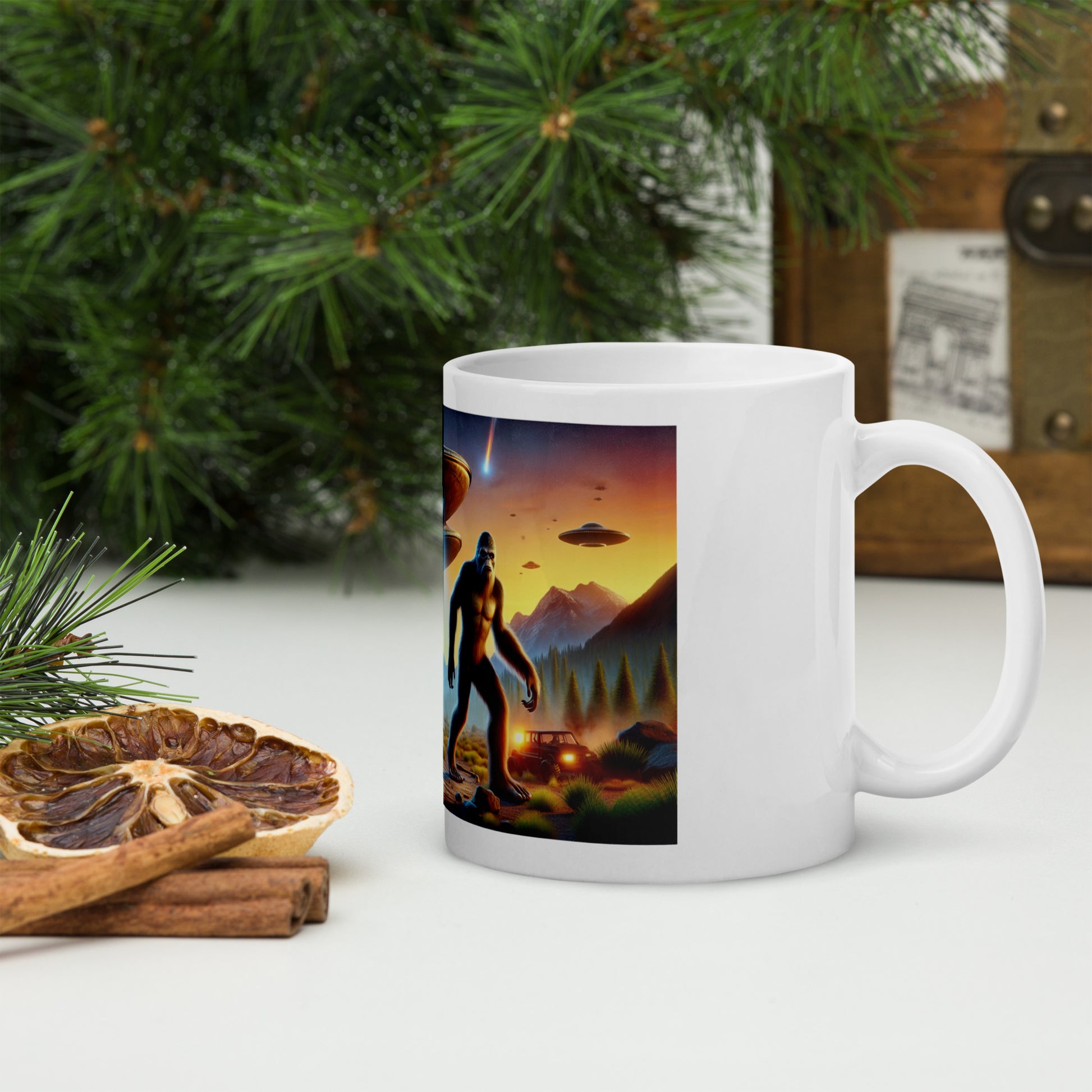 Bigfoot Surrounded by UFOs - Ceramic Coffee Mug